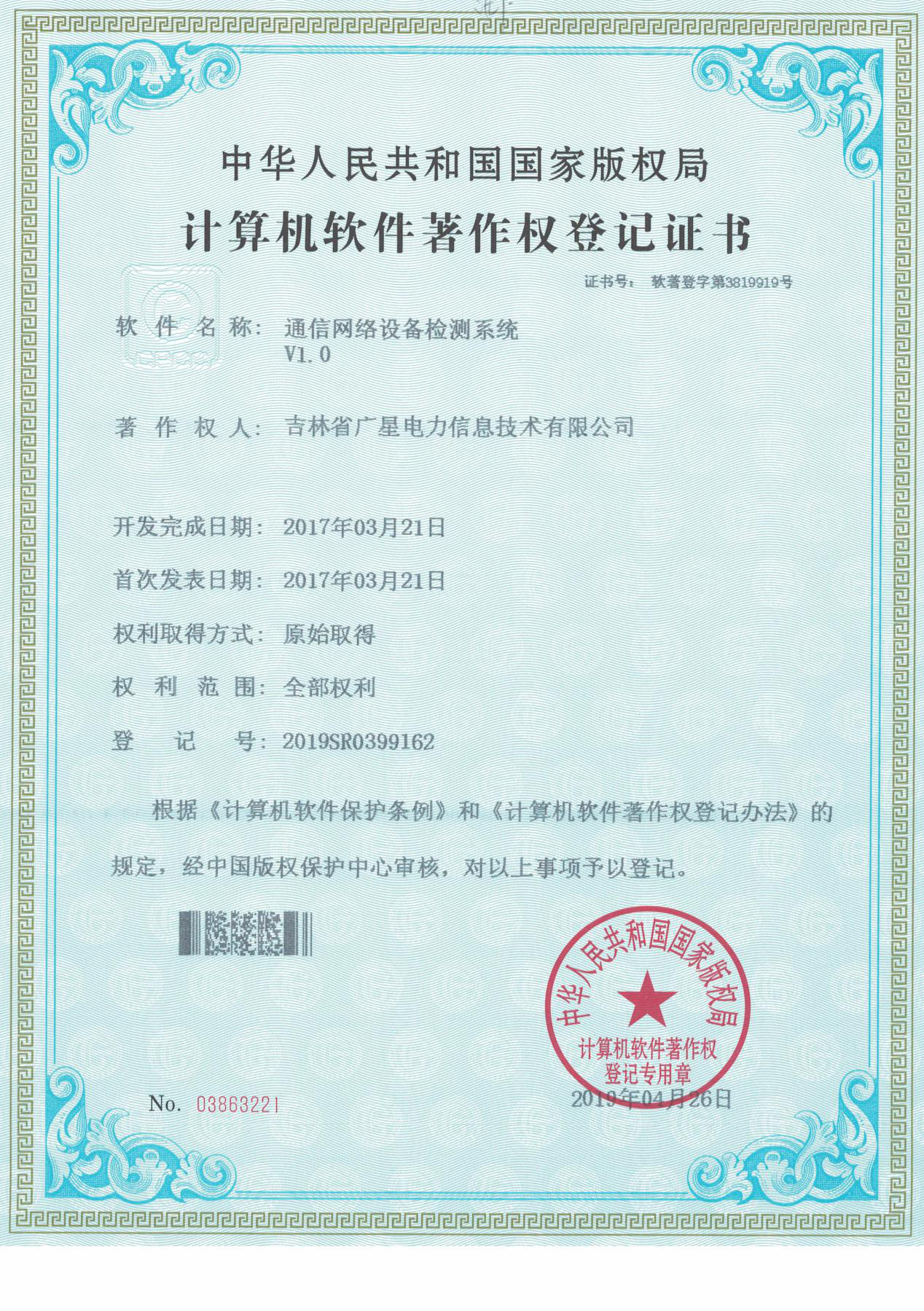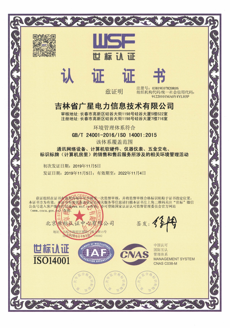 吉林省廣星智聯科技有限公司作為一家新興的通信設備集成商,取得的資質具體包括投標人承裝(修、試)電力設施許可證、質量管理體系認證證書(ISO9001)、環境管理體系認證證書(ISO14001)、職業健康安全管理體系(OHSAS18000)、綜合運維可視化管理系統證書、通信網絡技術服務管理系統證書、通信網絡設備檢測系統證書、綜合布線管理系統證書、通信信號檢測系統證書、電力線路與電力設備維保管理系統證書、安防設計施工一體化管理軟件證書、電力系統綜合服務平臺證書、設備機房標準化治理軟件證書、機房設備運行監控系統證書等。